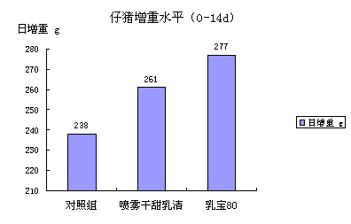 結(jié)論:添加乳糖對(duì)提高仔豬生長(zhǎng)性能有顯著效果。乳寶80替代噴霧干甜乳清粉使用,性價(jià)比更高。